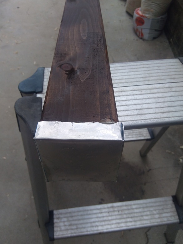 - 角材は木材なので雨風に耐えるようキシラデコールで塗装し最上部は雨が染みないようアルミ板キャップ