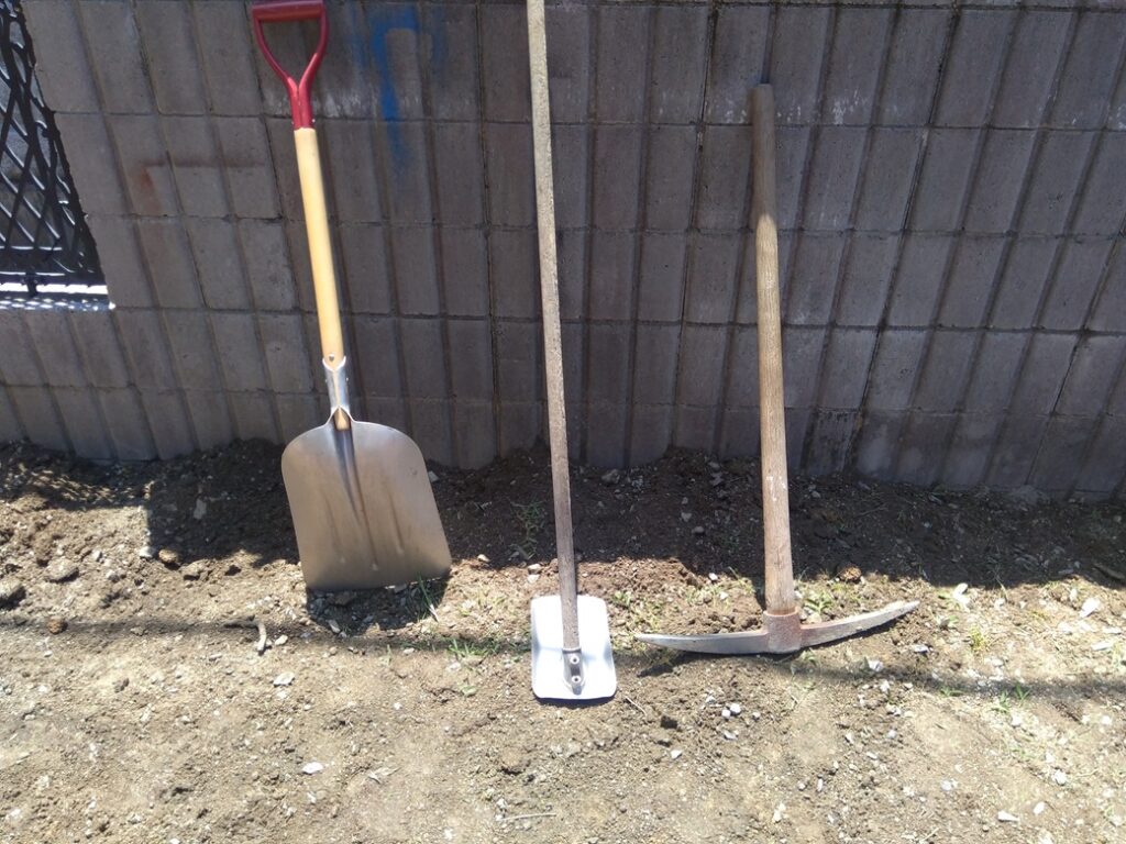 長年踏み固めている所為もあり、かなり地盤が固くこれらの道具がなければ歯が立たない状態