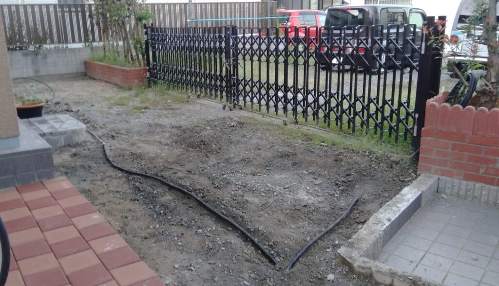 ✋その前に前回南側で出来なかった外灯用の電源ケーブルの埋め込みは今回は忘れずに施工