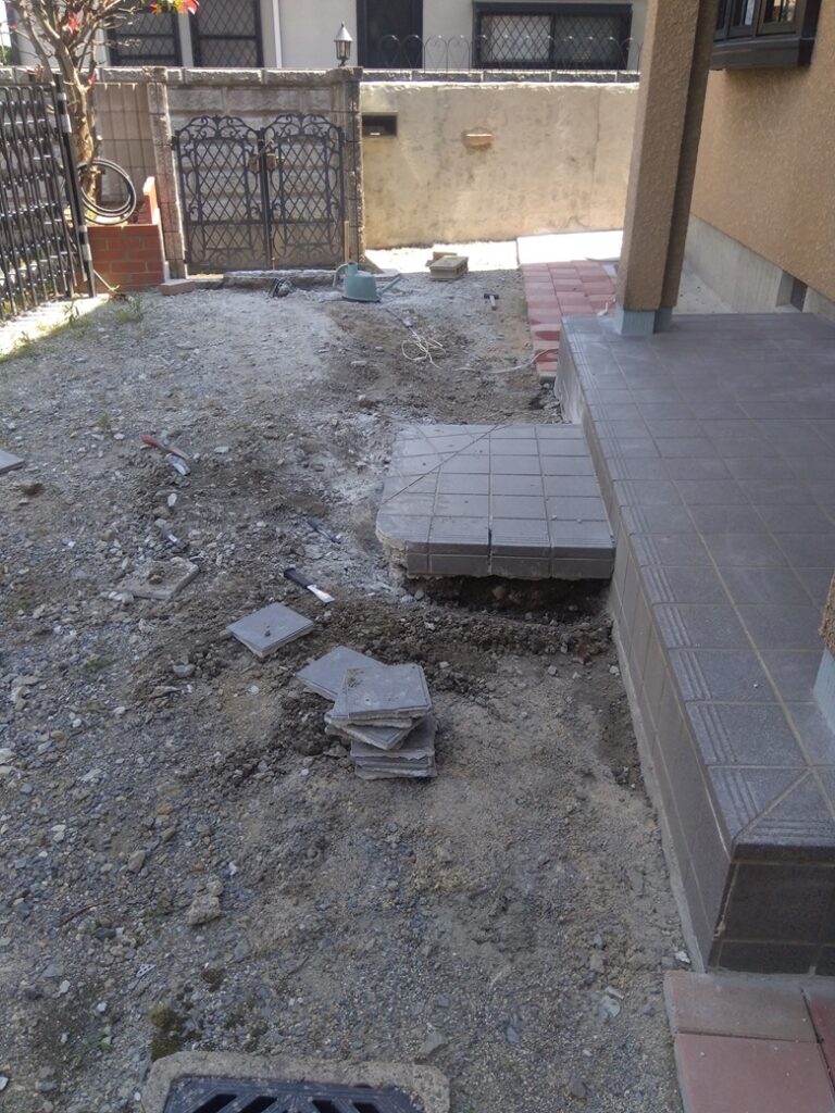 アプローチ以外は土で奥の南側のカラー板敷がここまで出来上がって